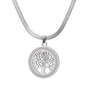 Affordable Luxury Fashion Titanium Steel Diamond Outer Ring Big Tree Pendant Snake Chain