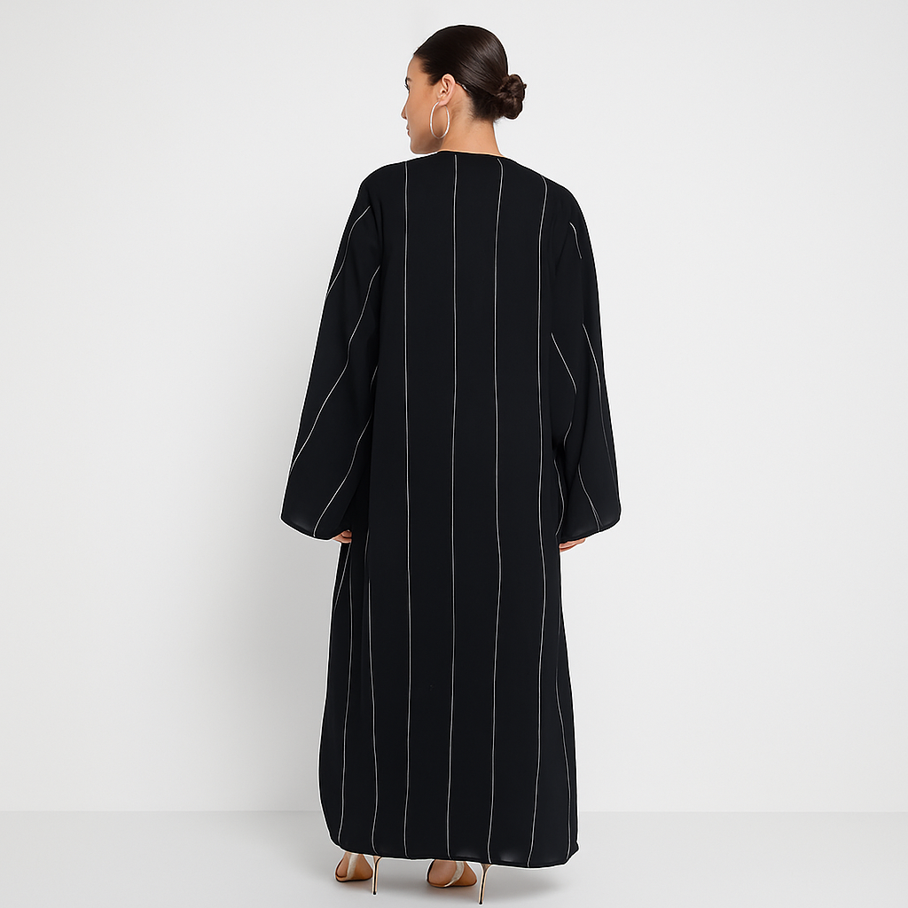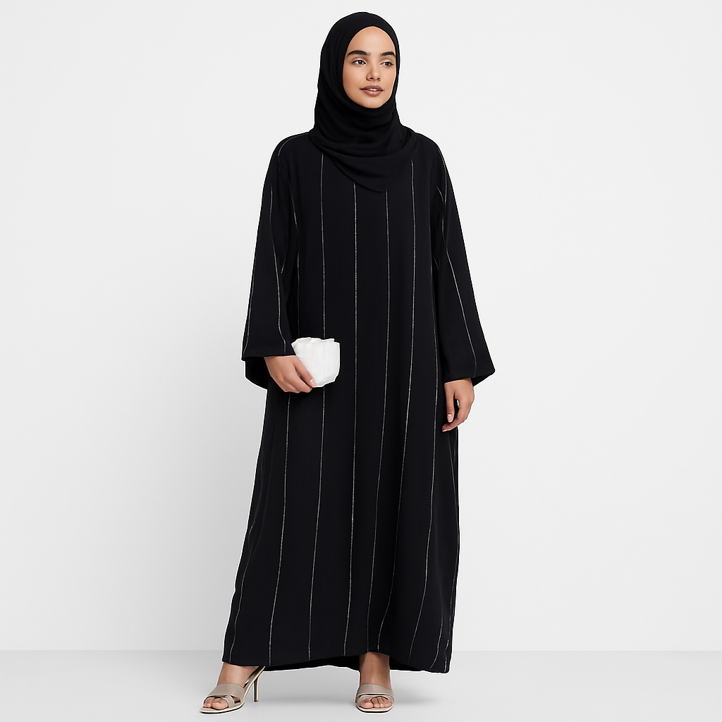 Elevate your modest wardrobe with Haya’s Closet’s elegant Black Abaya with matching Sheila.
