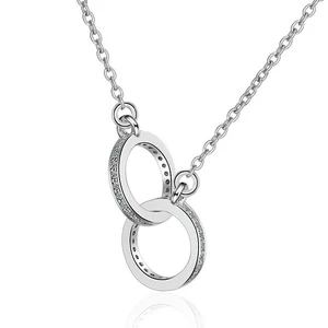 Fashion Zircon Geometric Shape Double Ring Necklace