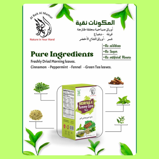 At its heart is Moringa oleifera, often called the miracle tree, packed with antioxidants, vitamins, and minerals to nourish your body. Cinnamon brings gentle warmth to stimulate digestion, while peppermint offers a refreshing, calming effect to reduce discomfort. Fennel adds natural sweetness and is known for relieving gas and aiding metabolism, and green tea provides mild energy with powerful antioxidants.